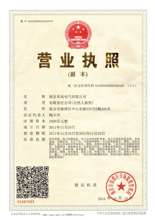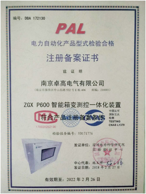 電(diàn)力自(zì)動化(huà)産品型式檢驗合格注冊備案證書(s™γhū)
