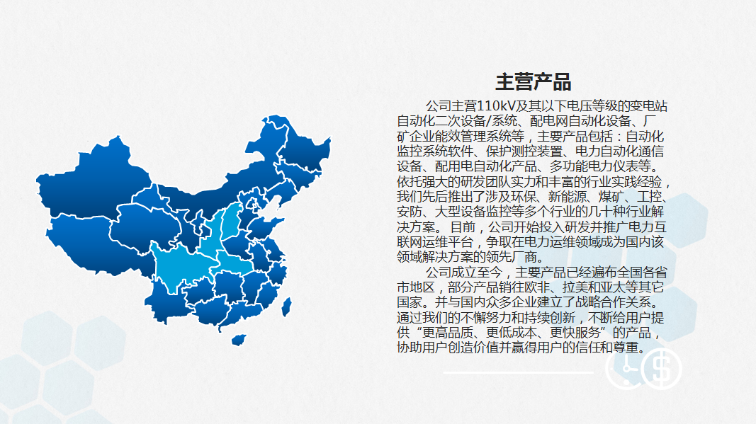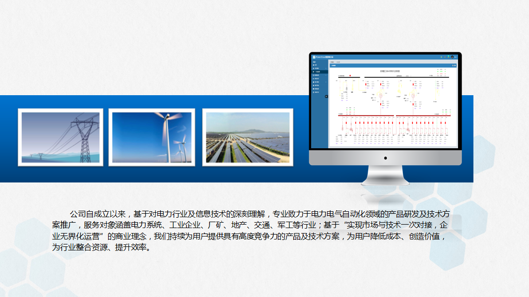 公司主營110kV及其以下(xià)電(diàn)壓等級的(de)變電(diàn)站α"≤¶(zhàn)自(zì)動化(huà)二次設÷備/系統、配電(diàn)網自(zì)動化(huà)設備、廠(chǎnπ★∏g)礦企業(yè)能(néng)效管理(lǐ)系統等,主要(yào)産品→≠包括:自(zì)動化(huà)監控系統軟件(jiàn)、保護測控裝©&置、電(diàn)力自(zì)動化(huà)通(tōng)信→'∏設備、配用(yòng)電(diàn)自(zì)動化(huà)産品、☆ 多(duō)功能(néng)電(diàn)力儀表等。↕→>依托強大(dà)的(de)研發團隊實力和(hé)β> ×豐富的(de)行(xíng)業(yè)實踐經驗,我們先後推出了(le)涉及環保≤¥→Ω、新能(néng)源、煤礦、工(gōng)控、安防、大(dà)型 ♣Ω設備監控等多(duō)個(gè)行(xíng)業(Ω•₩✘yè)的(de)幾十種行(xíng)業(y¥±£è)解決方案。 目前,公司開(kāi)始投入研發并推 廣電(diàn)力互聯網運維平台,争取在電(diàn)力運維領域成為(wèi)✔★δ←國(guó)內(nèi)該領域解決方案的(&λ§de)領先廠(chǎng)商。