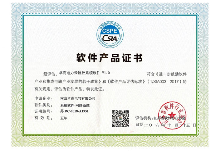 電(diàn)力自(zì)動化(huà)産品型式檢驗合格注冊備案證書(s™γhū)